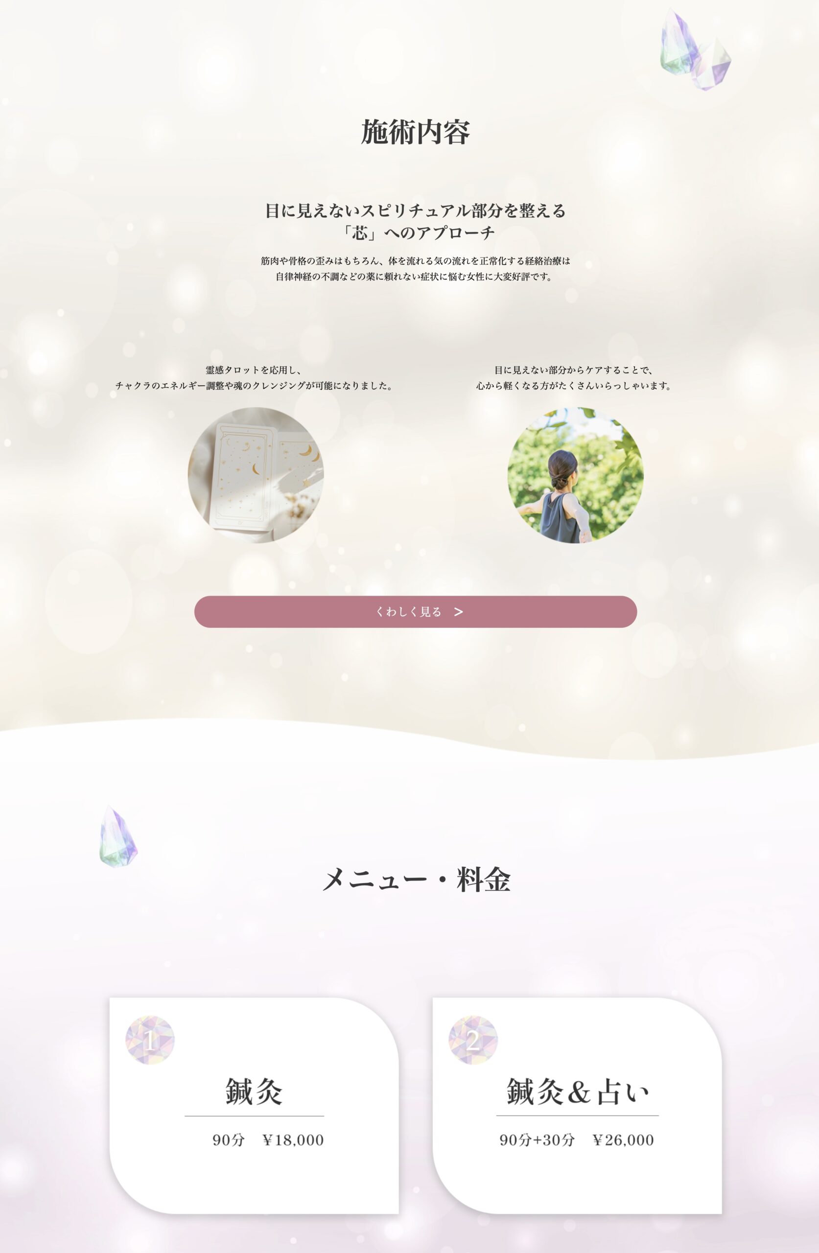 施術メニュー・料金・よくある質問をわかりやすく整理。初めての方でも不安を解消できる構成に。