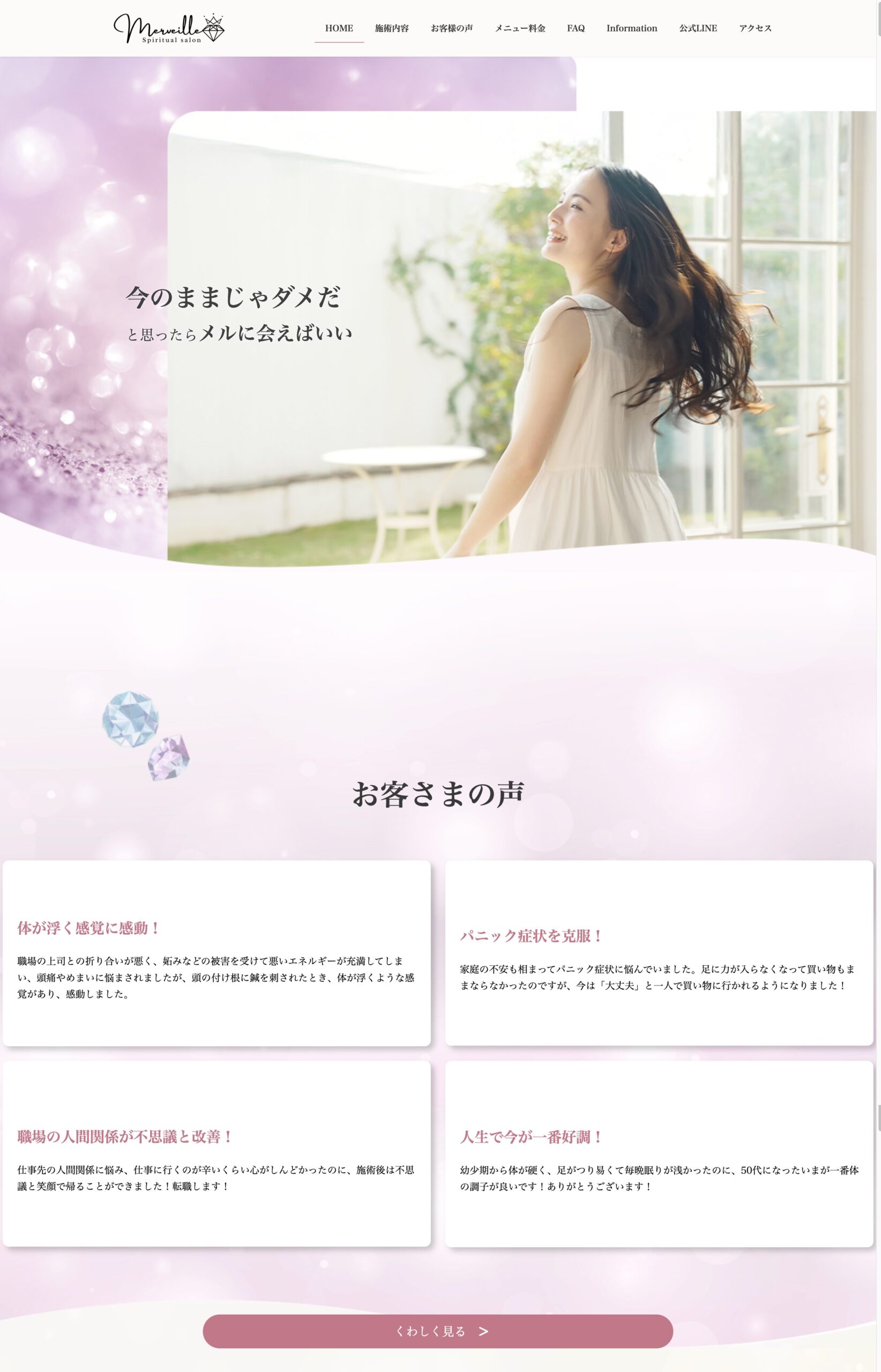 女性の心と身体のバランスを整える鍼灸サロン「Merveille(メルヴェイユ)」様のホームページを制作しました。